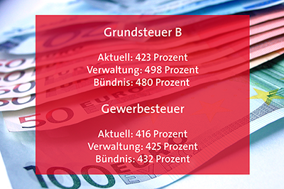 Das 5er-Bündnis aus SPD, Grüne, BBO, Linke und UW wollen Grundsteuer weniger und Gewerbesteuer mehr anheben als von der Verwaltung vorgeschlagen. Planungskosten für den Radschnellweg sollen im Etat bleiben, dies sind die Ergebnisse der Haushaltsklausur, die am vergangenen Donnerstag im Finanzausschuss vorgelegt wurden.