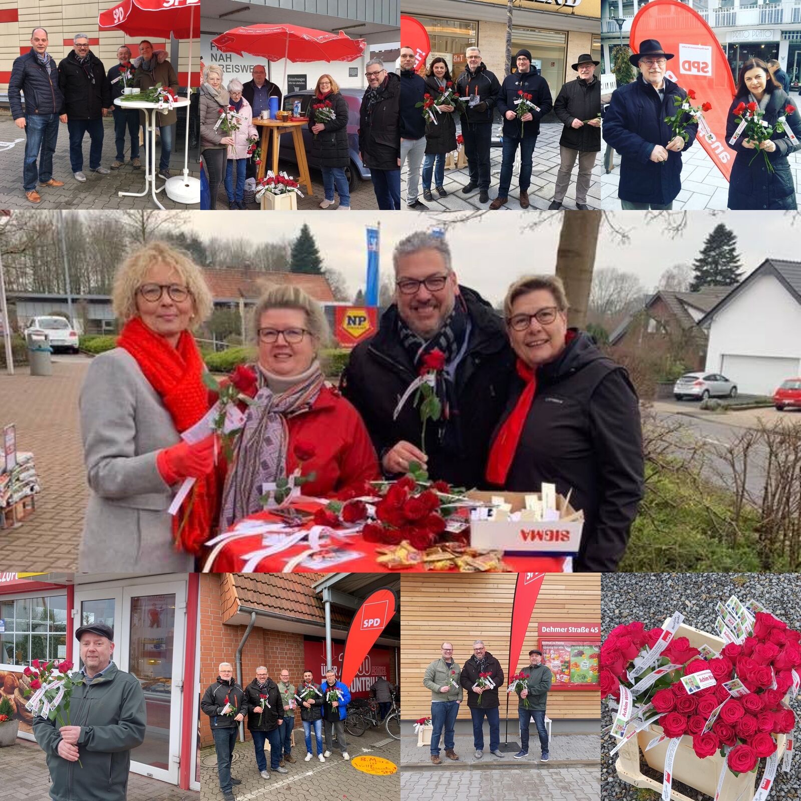 Um auf den heutigen Weltfrauentag (08.03.) hinzuweisen hat der SPD Stadtverband eine stadtweite Aktion mit Infoständen in allen Ortsteilen (Fotos aus Werste, Dehme, Eidinghausen, Rehme, Wulferdingsen und aus der Innenstadt von Bad Oeynhausen) durchgeführt. An den Ständen überrechten die örtlichen Ratskandidat:innen und der Bürgermeister Achim Wilmsmeier einen Blumengruß für die Frauen als Dank für ihre wichtige Arbeit für unsere Gesellschaft.