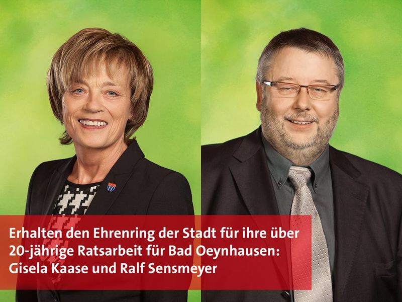 Während der kommenden Ratssitzung am 24.06. werden 5 verdiente Ratsmitglieder mit dem Ehrenring der Stadt Bad Oeynhausen ausgezeichnet.