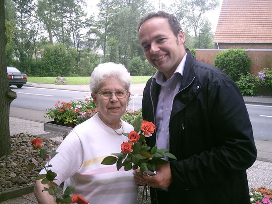 Kurz vor der entscheidenen Stichwahl war der SPD-Landratskandidat Dr. Ralf Niermann im Ortsteil Werste unterwegs und verteilte zusammen mit dem SPD-Ortsvereinsvorsitzenden Ulrich Kaase, der stellv. Bürgermeisterin Giesela Kaase, dem stellv. Vorsitzenden der Jusos Minden-Lübbecke Jens Vogel und weiteren Mitgliedern des Werster Ortsvereins rote Rosen vor den Werster WEZ-Markt an die Werster Bürgerinnen und Bürger.