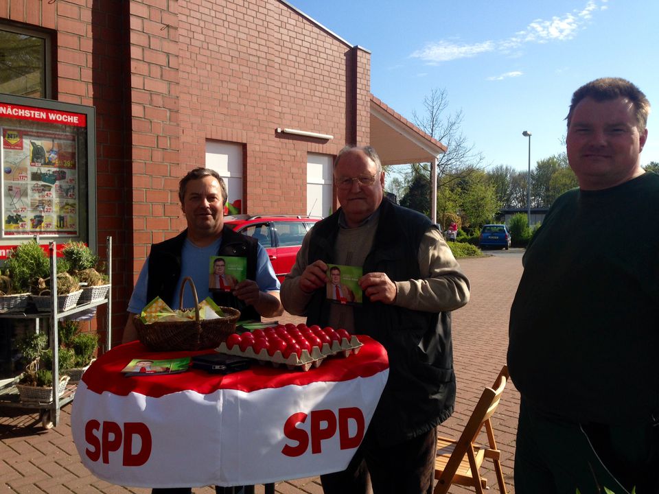 Am gestrigen Gründonnerstag haben die Mitglieder der SPD Wulferdingsen-Bergkirchen und der lokale Direktkandidat Andreas Below rote Ostereier und infos zur Kommunalwahl am 25.05 an die Kunden des NP in Wulferdingsen verteilt.
