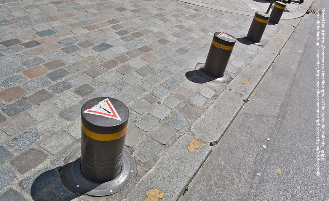 Symbolbild: Richard Drdul, Hydraulic bollards up, bearbeitet, CC BY-SA 2.0