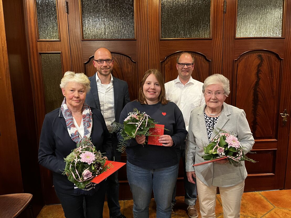 Für den Ortsverein gab es neben der Begrüßung der Neumitglieder auch zwei Ehrungen, die Christian Obrok übernahm. „Es ist immer eine besondere Ehre, die Mitglieder auszuzeichnen, die sich teilweise über Jahrzehnte ehrenamtlich für unsere Demokratie engagiert haben.“. Das trifft bei Petra Schomburg für 25 Jahre Mitgliedschaft und für sogar 50 Jahre bei Hilde Schelp zu. Beide haben sich immer engagiert und waren so gut wie bei jeder kommunalen Veranstaltung. Mit viel Applaus für diese Leistung erhielten alle eine Urkunde und einen Blumenstrauß.