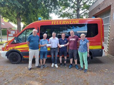 Foto, von links: Gerhard Beckmann, SPD Volmerdingsen, Dieter Seeger, JSG Am Wiehen, Thorsten Rürup, SPD Volmerdingsen, Bernd Flores, Jugendfeuerwehr Volmerdingsen, Philipp Sander Jugendwart Jugendfeuerwehr Volmerdingsen, Angelika Krafft, SPD Volmerdingsen