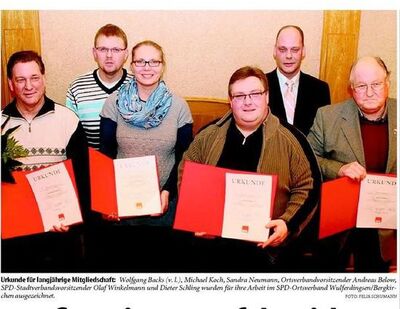 Bad Oeynhausen. Starker Zusammenhalt steht beim SPD-Ortsverband Wulferdingsen/Bergkirchen an oberster Stelle. 30 Mitglieder zählt der Ortsverein. Viele von ihnen sind bereits seit vielen Jahren in der Partei aktiv. Bei der Jahreshauptversammlung wurden nun einige langjährige Mitglieder für ihre Arbeit ausgezeichnet.
