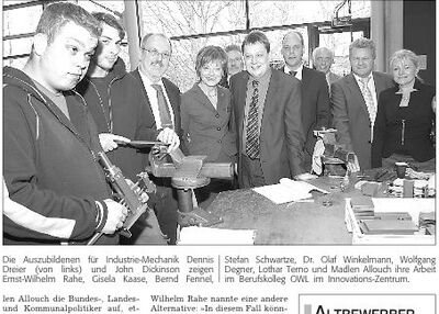 Es bietet seit Februar 2007 ein Programm für Altbewerber an. »Wir holen sie aus der Warteschleife«, sagte Madlen Allouch. Eine SPD-Delegation, der der Bundestagesabgeordnete Stefan Schwartze, SPD-Landtagskandidat Ernst-Wilhelm Rahe und Dr. Olaf Winkelmann, Fraktionschef der SPD Bad Oeynhausen, angehörten, besuchte das Berufskolleg.