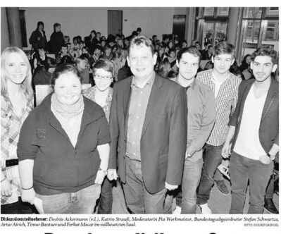 Bundestagsabgeordneter Stefan Schwartze (SPD) stellt sich den Fragen Jugendlicher