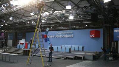 Konzentriert arbeitet die SPD an der Weiterentwicklung ihrer Politik. Schon der Veranstaltungsort des Parteitags, der ehemalige Dresdner Bahnhof im Herzen Berlin, dokumentiert den Arbeitsprozess, den sich die Partei im vergangenen Jahr verordnet hatte: eine Werkshalle, in der nicht Kulisse im Vordergrund steht.