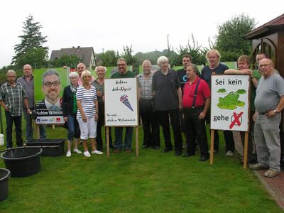 „Dadurch fällt deutlich weniger Müll an, die Umwelt wird geschont und es macht Spaß, zusammen zu arbeiten“, so der Tenor von Reinhard Scheer, auf dessen Wiese die Aktion stattfand. Im Anschluss gab es bei Bratwurst und kalten Getränken viel Gelegenheit, die nächsten 5 Wochen bis zur Wahl zu planen.
